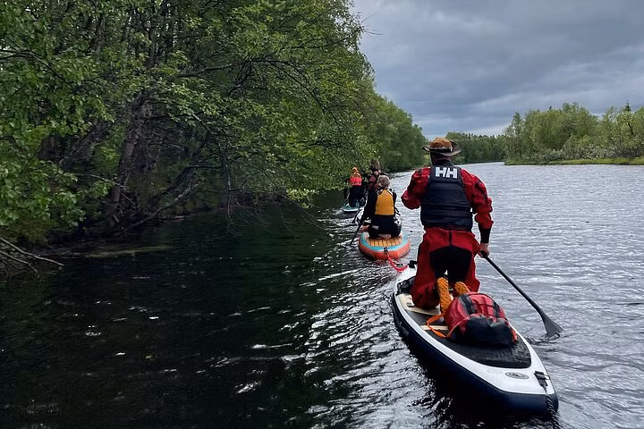 La primera actividad emocionante del día es el stand-up paddleboarding (SUP) en el lago, donde los participantes pueden disfrutar del escenario ártico mientras navegan por las aguas. La excursión de SUP es tanto para principiantes como palistas experimentados, lo cual hace que sea una experiencia inclusiva y agradable para todos. Después, el grupo se reúne para almorzar, proporcionando una oportunidad para descansar, recargarse y socializar con otros aventureros. Una vez terminado el almuerzo, la emoción del día continúa con snorkel.